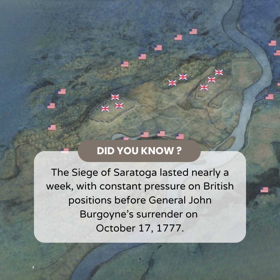 Henry Knox’s winter expedition of 1775–1776 required endurance without applause. At Bemus Heights in October 1777, Continental forces held their ground under sustained pressure. During the Siege of Saratoga (October 10–16, 1777), tightening American lines strained British supply and morale.